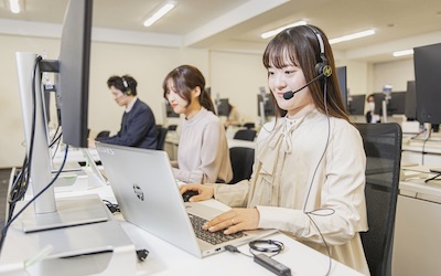 電話の相手は、何か困ったことがあり問合せをいただくケースもあるため、時には強い不安から厳しい言葉を投げかけられることもあるかもしれません。配属先の管理者やリーダーがサポートする体制は整っておりますので、1人でため込まずに、対応方法を相談し身に着けていきましょう。
