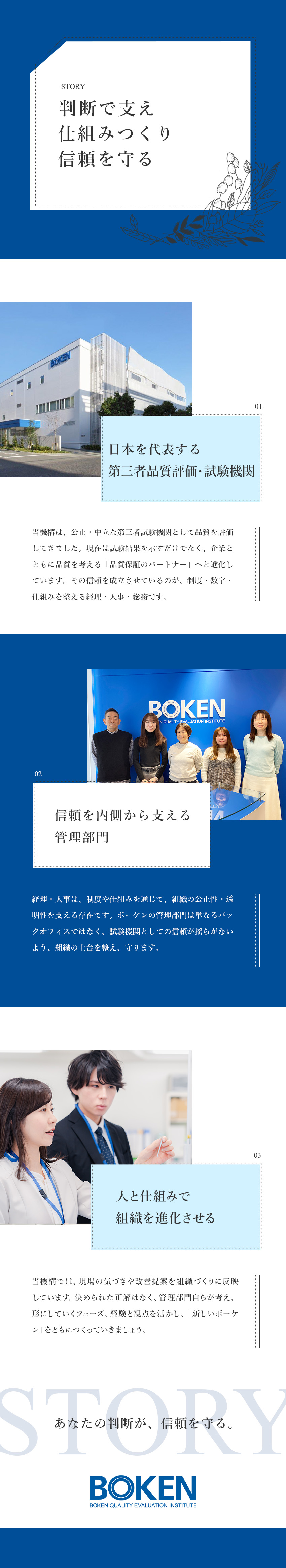 公正中立な第三者試験機関として社会、業界、お客様から必要とされる企業活動を実施。専門家を育て、人財の力量向上を通して、企業発展に挑み続けています。