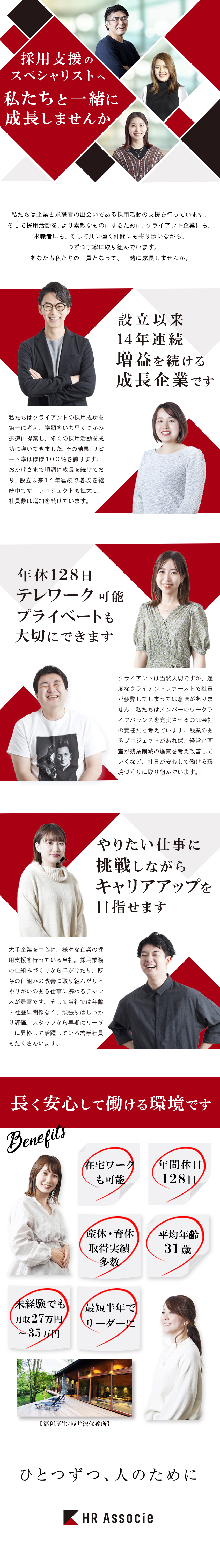 採用支援(人事)/年休128日/年収400万円~/未経験歓迎