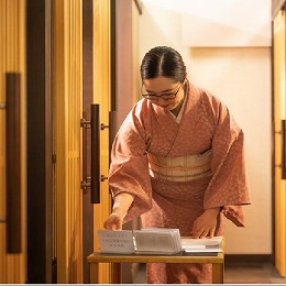 ◎当館の正社員は分業制ではありません。その理由としては、お客様への「気遣い」や「おもてなし」を大切にしているからです。収容人数の多い大きなホテルとは異なり当館は和風旅館です。江戸時代から続くおもむきある建造物を見たり、日本の情緒や移り行く季節を見て楽しむこと。そして食して感動していただく。