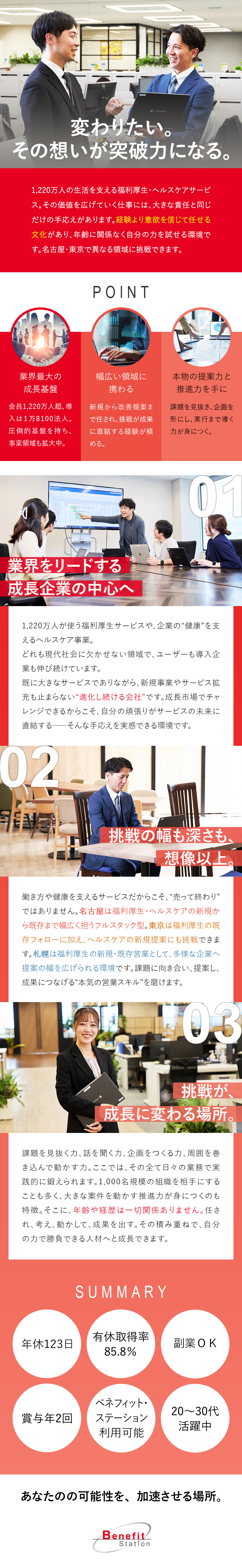 福利厚生・ヘルスケアサービスの法人営業/年休123日