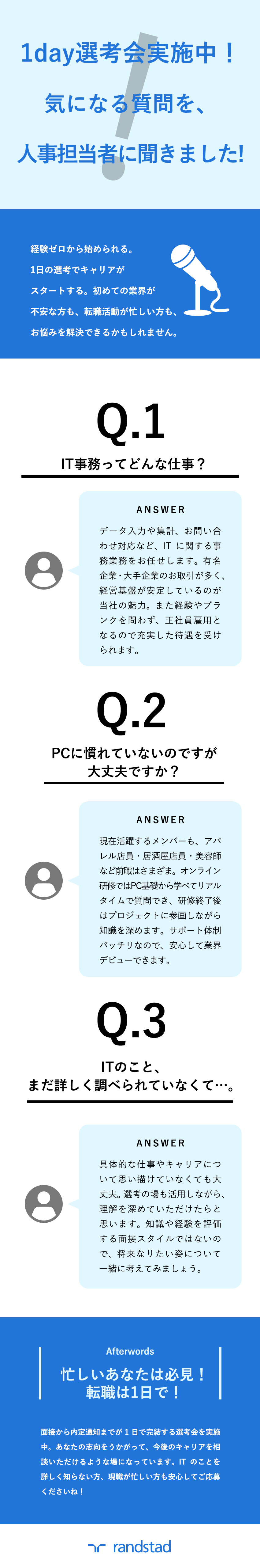 1day選考会実施中!/成長を続ける業界でIT事務/OW