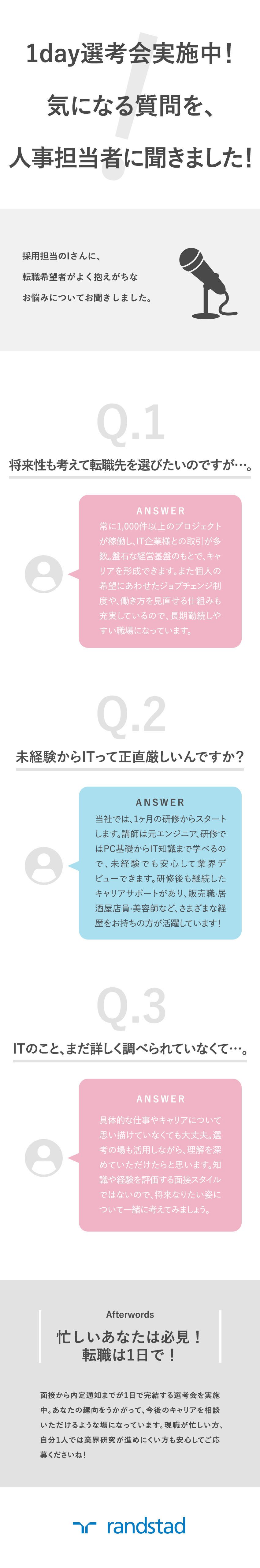 1day選考会実施中!ITサポート/安心の評価制度/SE