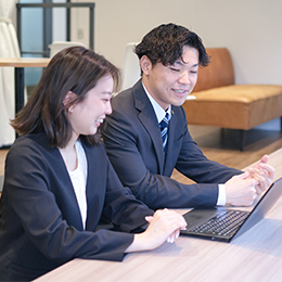 未経験で入社しましたが、研修のおかげで2週間で一人前に。毎日新しく学ぶことが多く、成約が増えるたびにやりがいを感じています。上司との距離も近く、困った時すぐ相談できるのも心強いです!