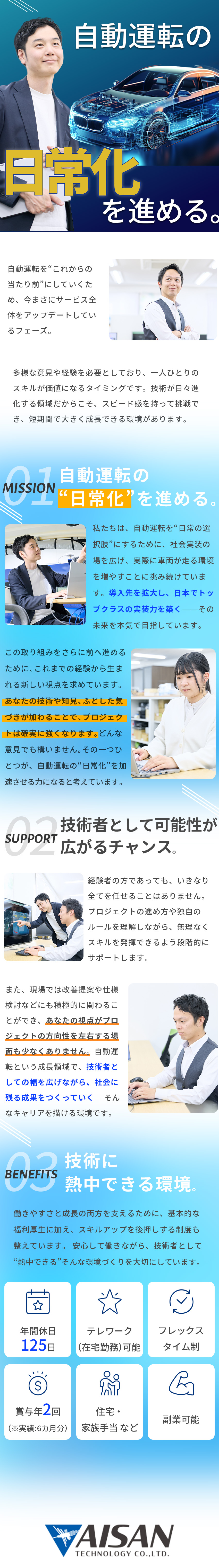 自動運転フィールドエンジニア/賞与6カ月分/年休125日