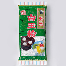 当社の代表商品『玉三』ブランドの白玉粉。長年にわたり、幅広い層に愛されています。