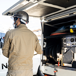 やがて排水管清掃や貯水槽清掃、設備点検を任されるようになり、最終的には不具合の発見からお客様への提案、見積作成まで担当できるように。1年・3年・5年と段階的にスキルが身につき、着実に成長できる環境です。単なる作業ではなく、“技術職”としてキャリアを築いていけます。