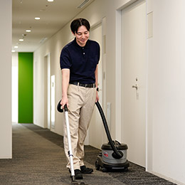 異業種からの転職でしたが、清掃だけでなく人と関わりながら現場を支える仕事なので、積極的なコミュニケーションが大事になります。スタッフや利用者から感謝される瞬間にやりがいを感じます。