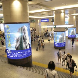 デジタルサイネージ(映像広告)、駅の壁面・柱面ポスター、フラッグ広告、駅看板 など