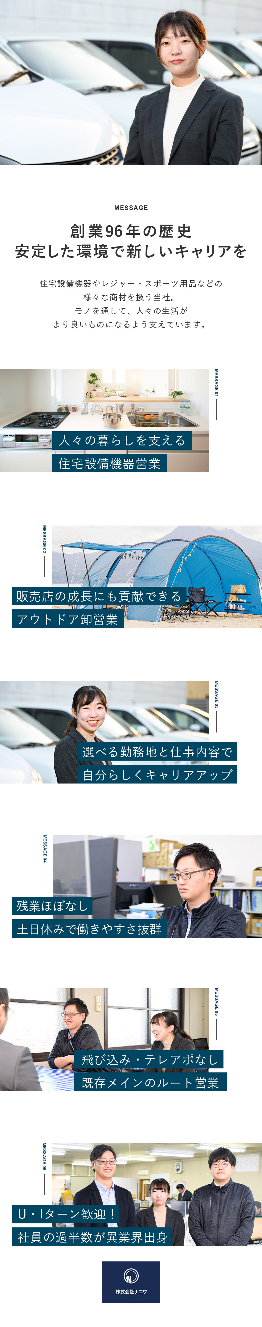 キャンプ用品・住宅設備のルート営業/土日祝休/残業平均20h