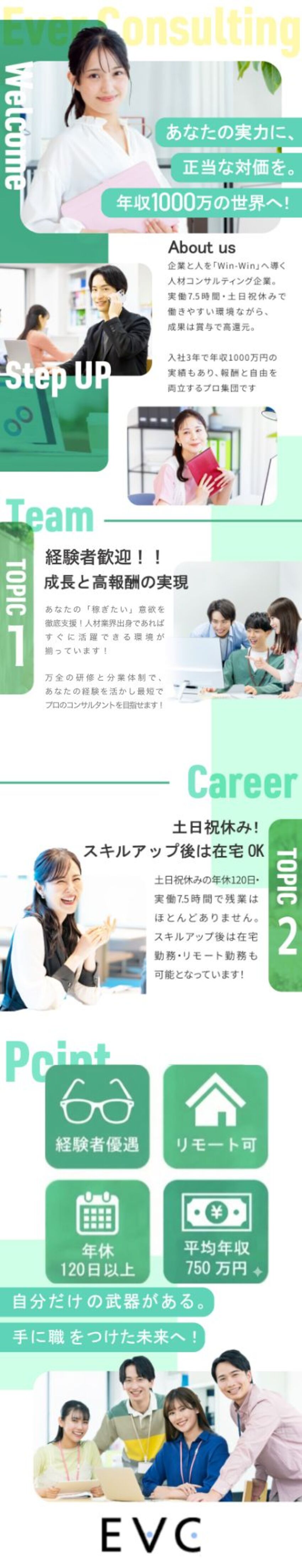 人材コンサルタント年収1000万/実働7.5H/経験者歓迎
