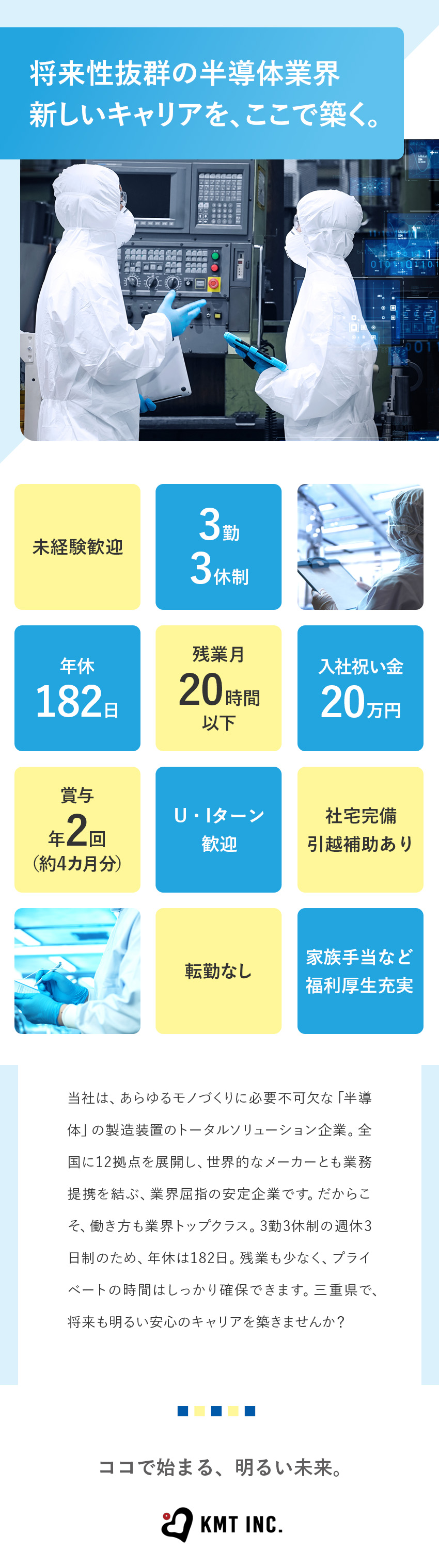 NEW未経験OK/半導体エンジニア/4勤2休/転勤無/入社祝い金有