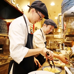 当社の事業内容や、『定食屋』『ラーメン屋』『セルフうどん』など、配属予定ブランドの特徴や業務の流れを基礎から学びます。