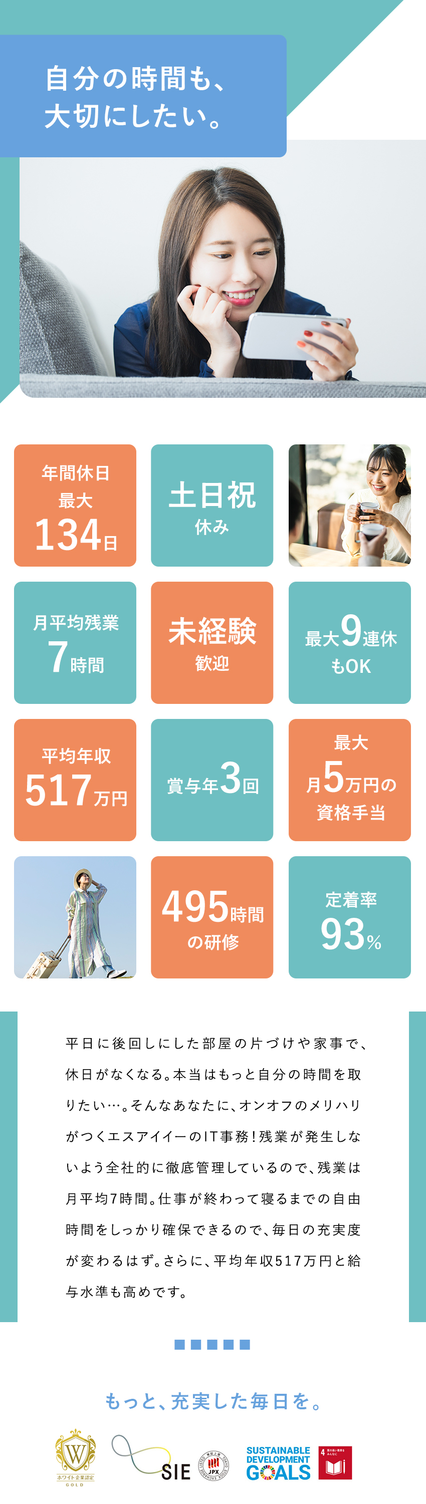 NEW締切間近IT事務/未経験歓迎/最大年休134日/土日祝休/月残業7h