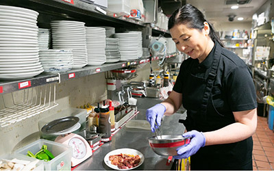 (お客さま対応、ご案内、オーダー受付、料理、ドリンクの提供、お会計、調理、仕込み、食器洗い)