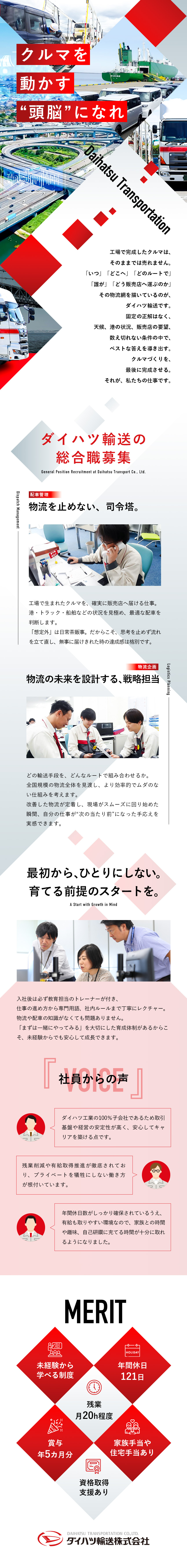 ダイハツ車の配車管理・物流企画/賞与5カ月分/年休121日