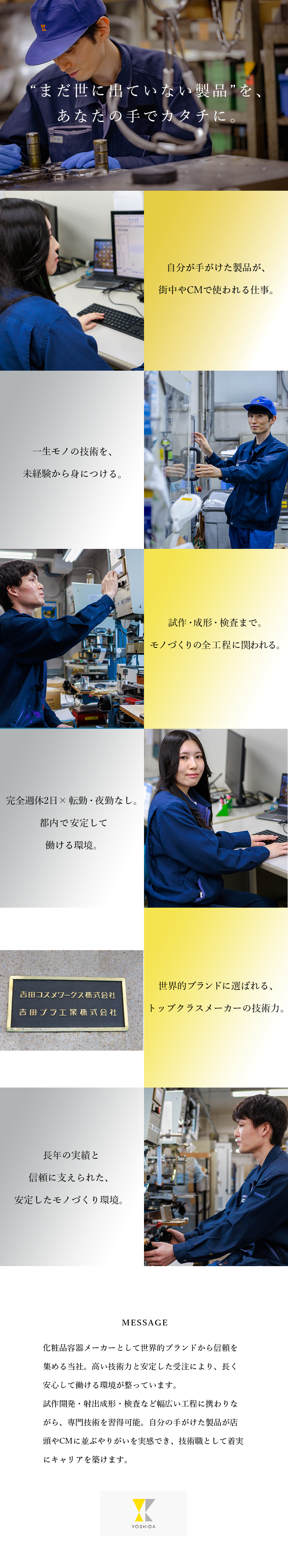 【墨田区】技術開発・改善提案/高級化粧品容器/環境配慮/グローバル企業/転勤・夜勤なし/土日祝休み