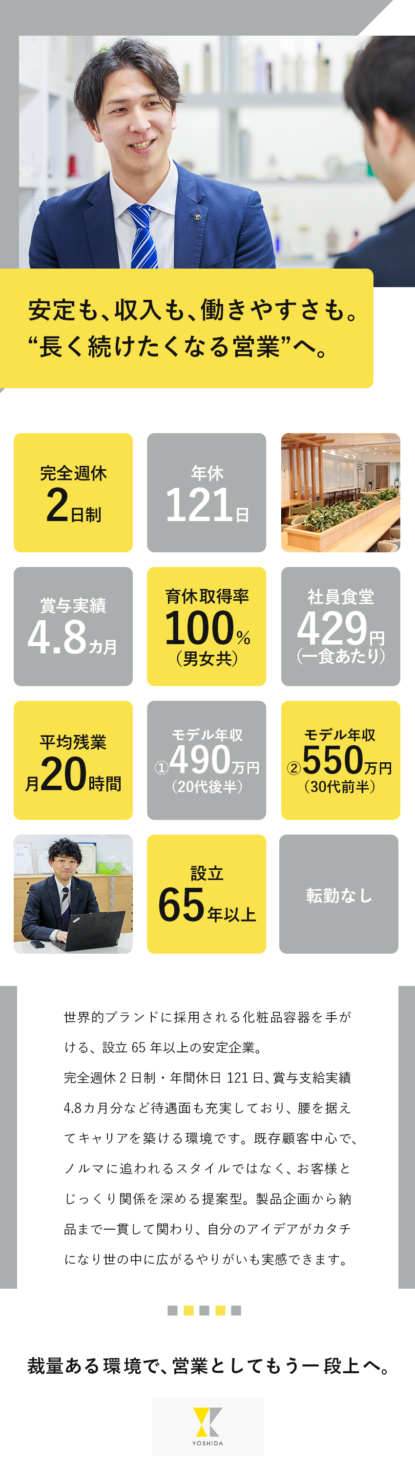 有名化粧品のパッケージ創造/伴走営業/年休121/賞与4.8