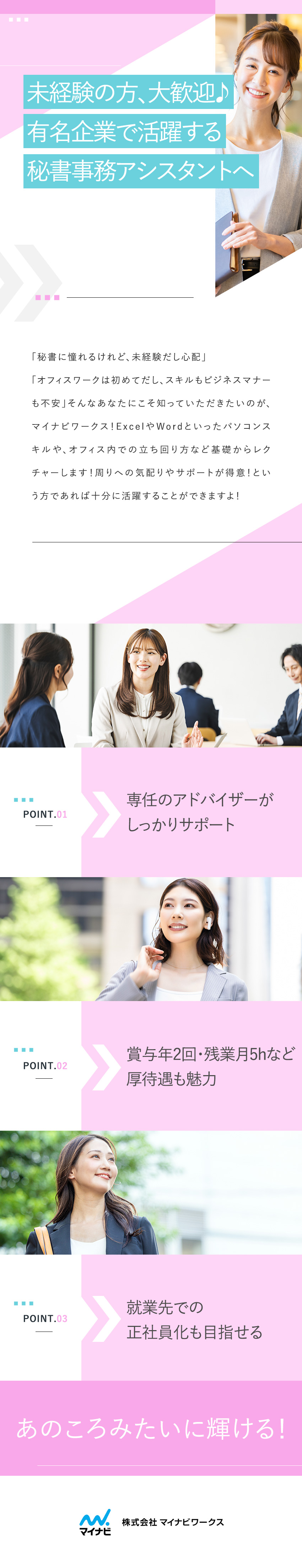 秘書・事務アシスタント/未経験歓迎/賞与年2回/残業月5h