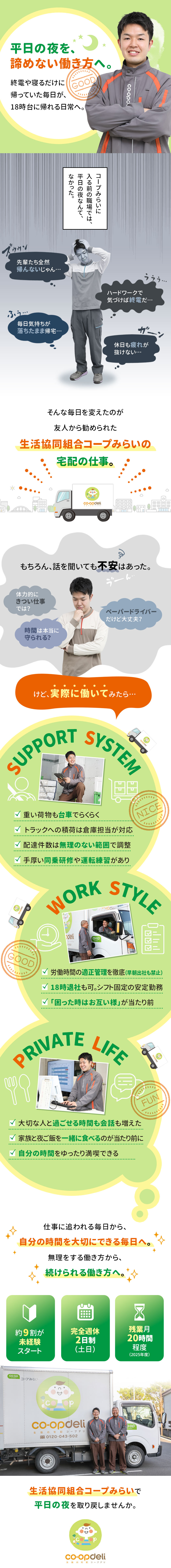 生協商品の宅配スタッフ/未経験可/完全土日休/直雇用正規職員