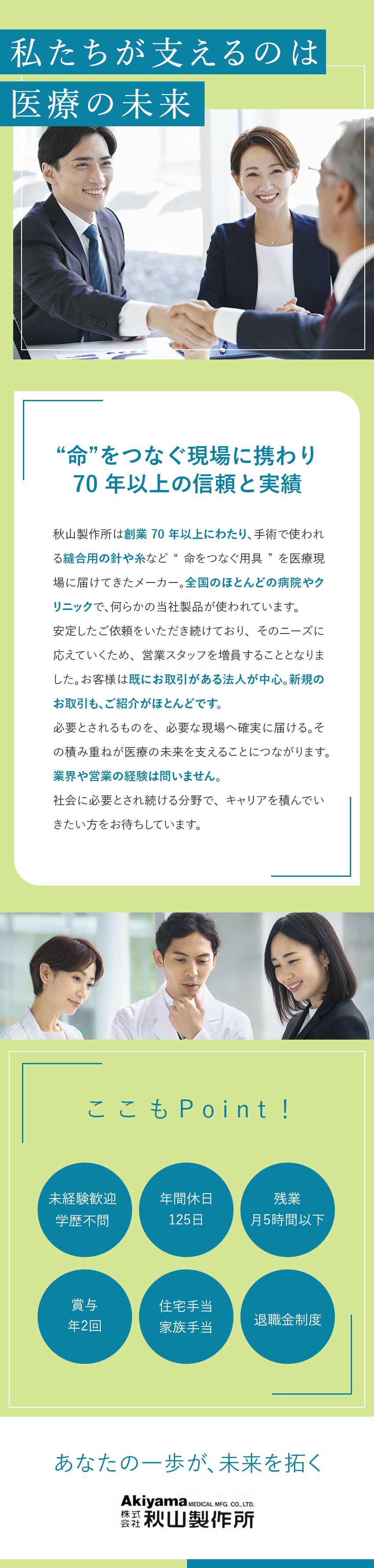 医療用品のルート営業/未経験歓迎/年休125日/賞与3カ月分