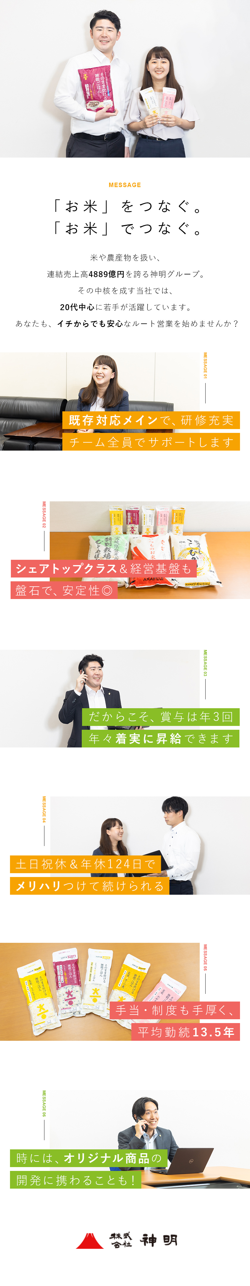 お米・穀物のルート営業/賞与年3回/年休124日/残業少なめ