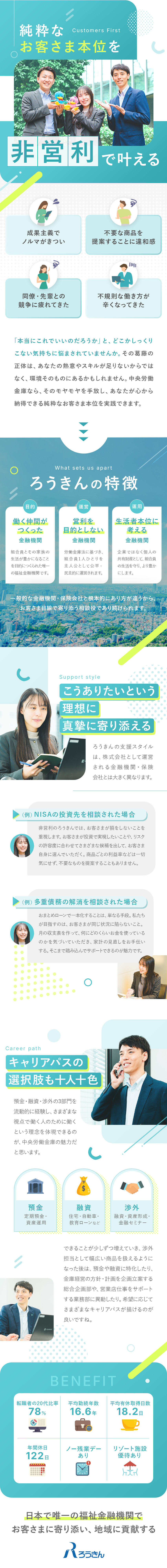 ろうきんの総合職(預金・融資・渉外)/残業少なめ・土日祝休み