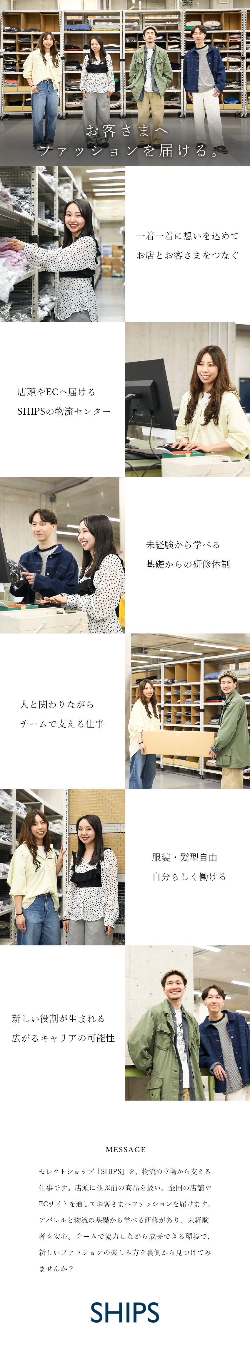 SHIPS倉庫の商品管理/未経験歓迎/社割あり/服装髪型自由