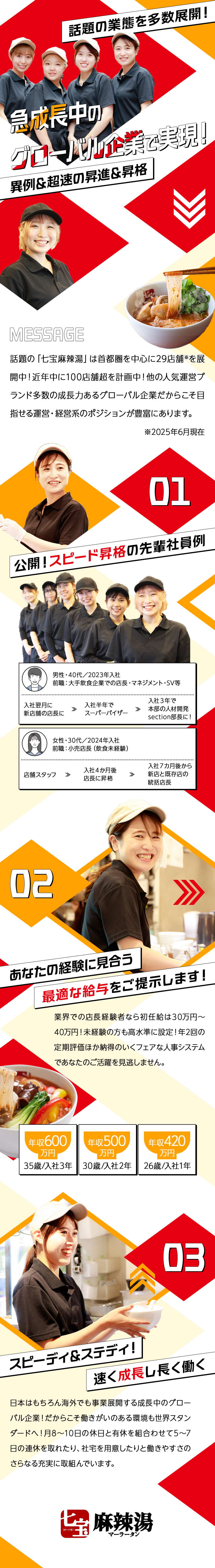 【1都3県】「七宝麻辣湯」店長◆急拡大中でキャリアアップを目指せる!/週8日休みで働き方改善叶います