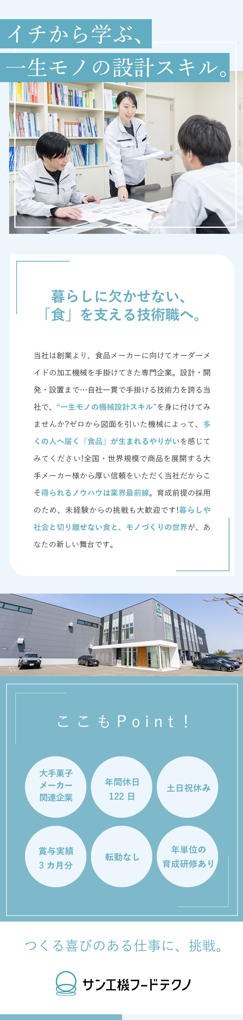 食品加工機の設計職/未経験歓迎/土日祝休み/賞与実績3カ月分