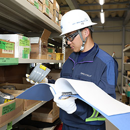 現場で扱う資材の管理を担います。デスクワークだけでなく、現物を確認・格納する業務も行います。