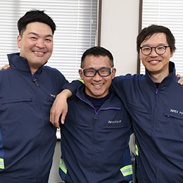 前職は自衛隊。人や社会に役立つ仕事がしたいと考え入社しました。現場は命に関わる分緊張感がありますが、ひとたび作業が終わればフランクで尊敬できる方ばかり。その頑張りを支える役割にやりがいを感じています。