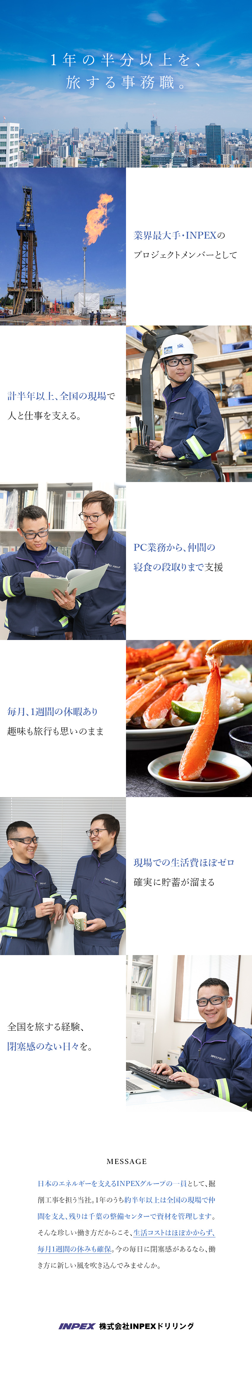 現場サポート事務/毎月7連休あり/現場期間の食費・宿泊費無料