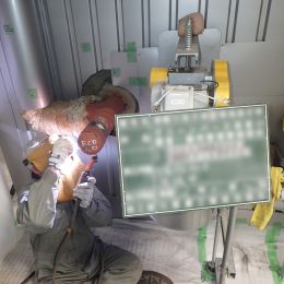 点検や清掃のために、ボイラー管寄せ検査口という場所を開けて作業します。先輩と一緒に慣れていきましょう