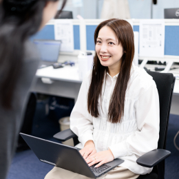 手配に関することや、業務の進め方、不明点など、その場にいるスタッフと内容を共有しながら進められる安心感があります。