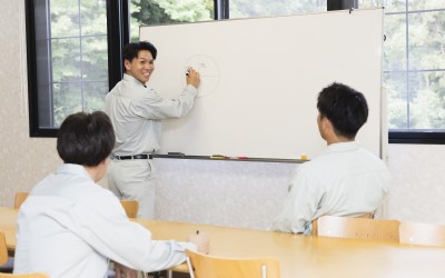 先輩社員と一緒に作業をしてみながら、一つずつ丁寧にレクチャーします。