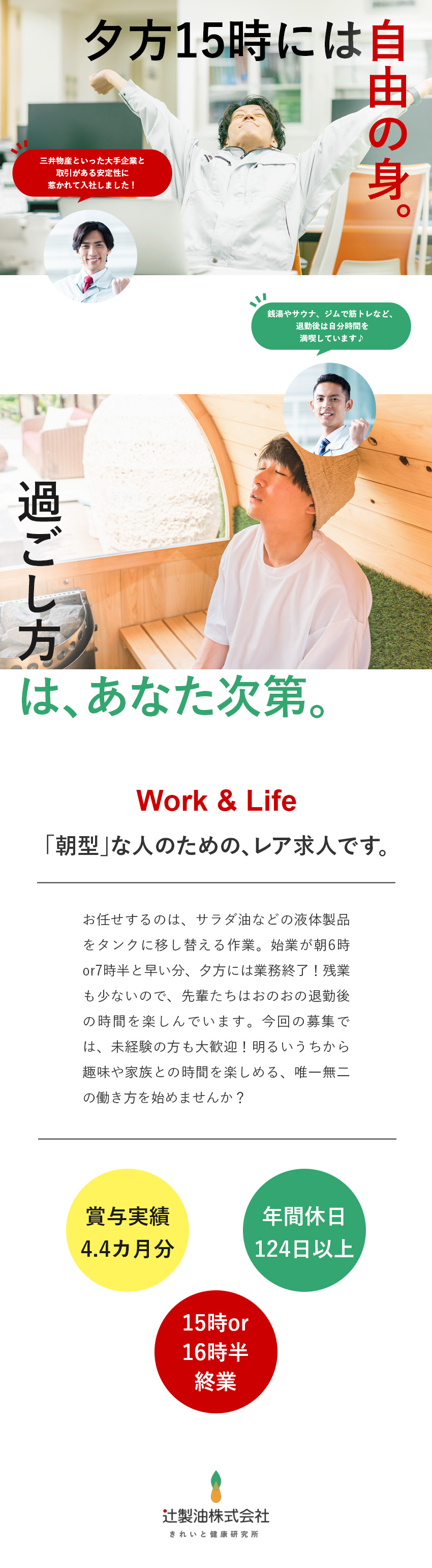 タンク作業スタッフ/未経験歓迎/基本定時退社/賞与4.4カ月