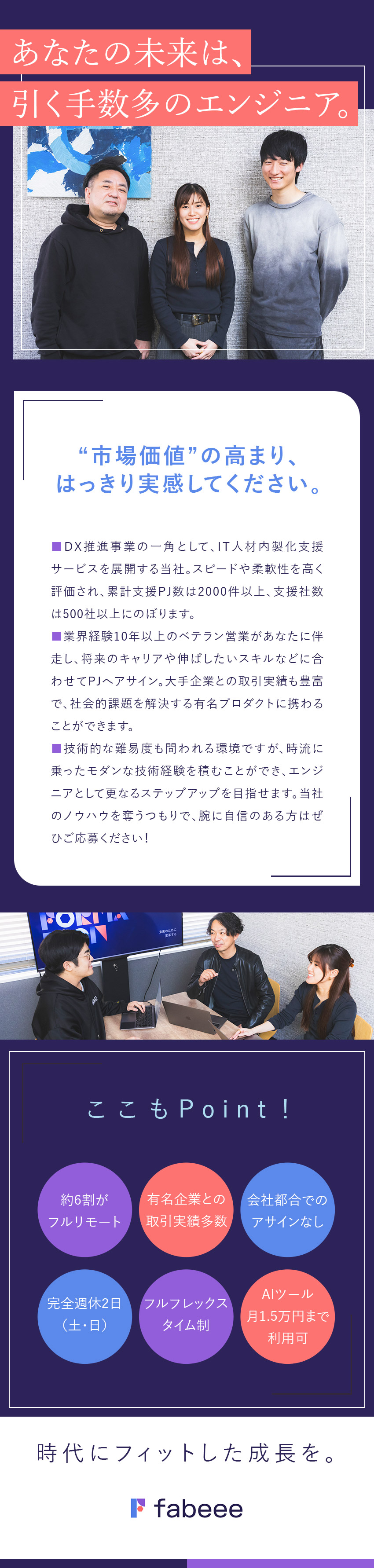 内製化支援エンジニア/リモート率100%/豊富な成長サポート