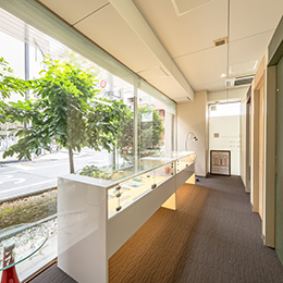 自然光が差し込む、落ち着いた院内。患者様もスタッフも安心できる空間づくりをしています。