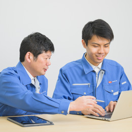 先輩社員に同行して現場へ入り、補助業務を担当しながら知識を身につけていただきます。