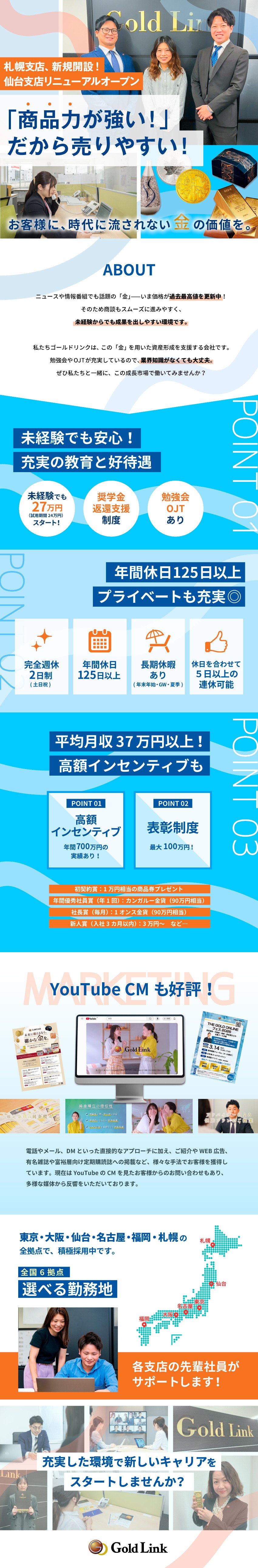 平均月収37万円~/強い商品力・金(ゴールド)の提案営業