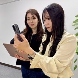 投稿に不可欠な社内の方との関係構築は、私がしっかりフォローします。新しく入社される方には、アイデア出しを期待したいと思っています。二人でポジティブに「それいいね」って言い合って進められたらと思います。