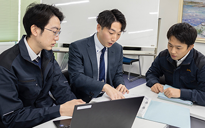 入社後は、先輩社員によるOJTを通じ、当社の仕事の流れや製品・サービスの特長などをレクチャー。