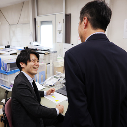 自身が関わった書籍が書店に並ぶ、医薬品添付文書が市販薬と共に世に出て誰かの役に立つ。それこそがこの仕事の大きなやりがい。テレアポ・飛び込みは一切ないので、お客様の声にしっかりと耳を傾け、都度適切な提案と堅実な仕事を心がけていれば、営業としての結果も自ずと出るはずです。あなたの「聞く力」がお客様からの「ありがとう」、そして次へのモチベーションへとつながる。そんな面白さもあります。