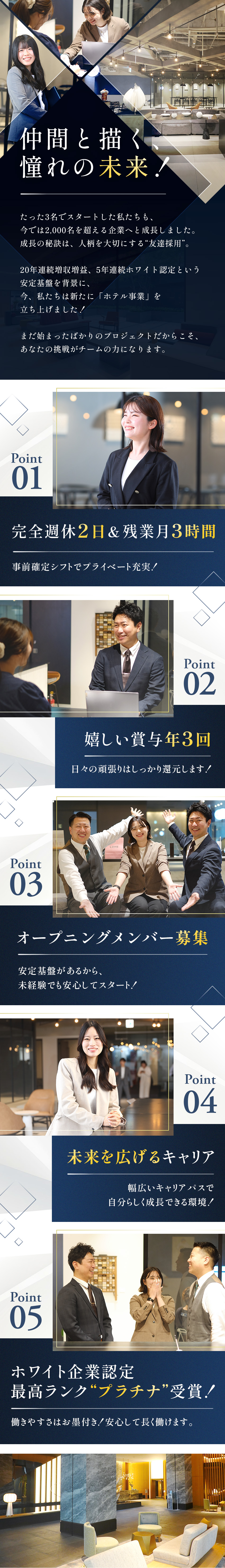 【オープニング★完休2日★賞与年3回★残業月3h】ホテルのフロント業務 もしくは、事務業務をお任せ!