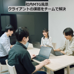 チーム制で、Web広告3年以上の経験豊富なチームリーダーを筆頭に、他メンバーとお互いサポートし合いながら業務を進めています。