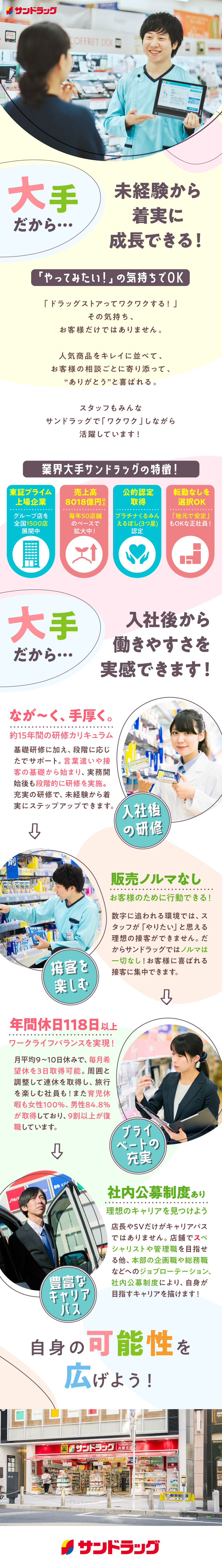 転勤なしOK/ドラッグストアの店舗スタッフ/残業少なめ