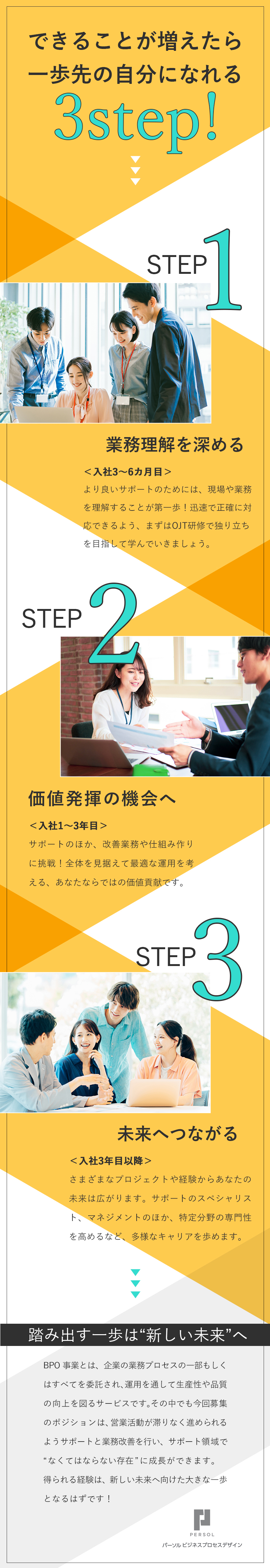 営業部門のサポート業務や、業務改善・効率化に取り組んでいただきます。