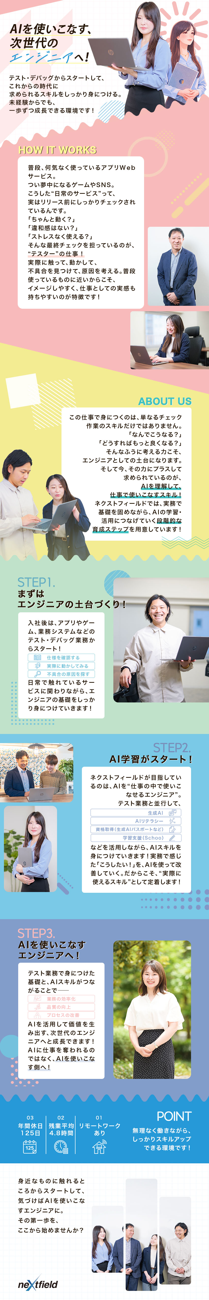 テストエンジニア/アプリやゲームに関わる&AIスキルも習得!