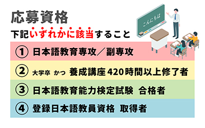 実務未経験者可 ※日本語教育能力検定試験合格者/登録日本語教員資格取得者等、当社規定により考慮